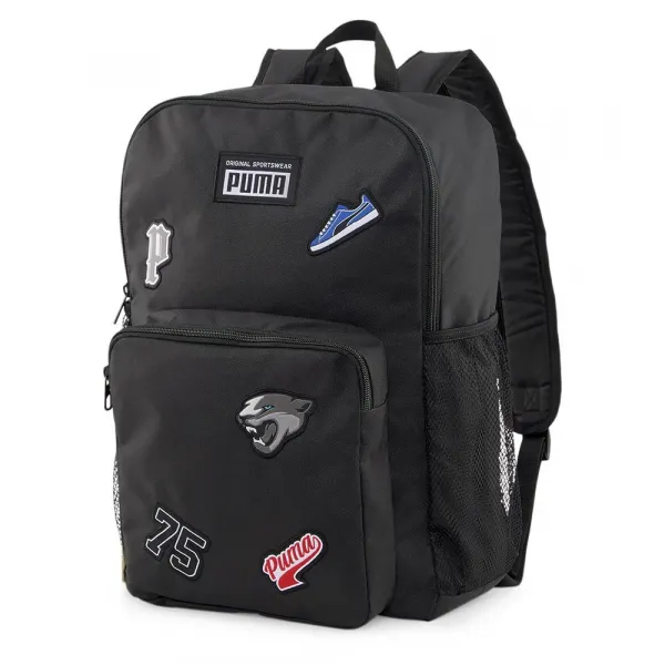 독특한 75번째 생일 아카이브 우븐 배지; 전면 지퍼 컴파트먼트; 메인 수납공간으로 여는 양방향 지퍼; 메인 컴파트먼트 내부의 라이닝 노트북 컴파트먼트; 측면 메쉬 포켓 2개; 웨빙 캐리 핸들; 반사 디테일의 패딩 처리된 어깨끈; PUMA 워드마크 우븐 로고 배지