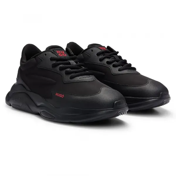 혀에 빨간색 아이코닉 휴고 패치와 힐 카운터에 톤온톤 빅 브랜딩이 있습니다.