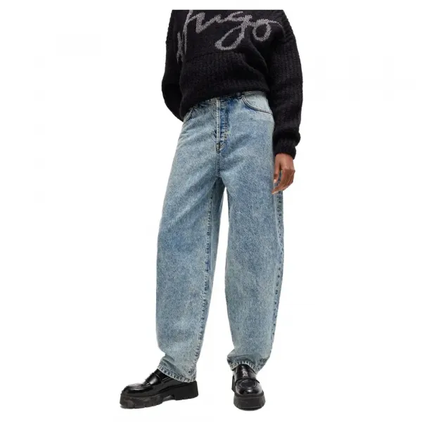 이 제품은 하이 라이즈와 와이드 레그로 스트레이트 핏으로 제작되었습니다.