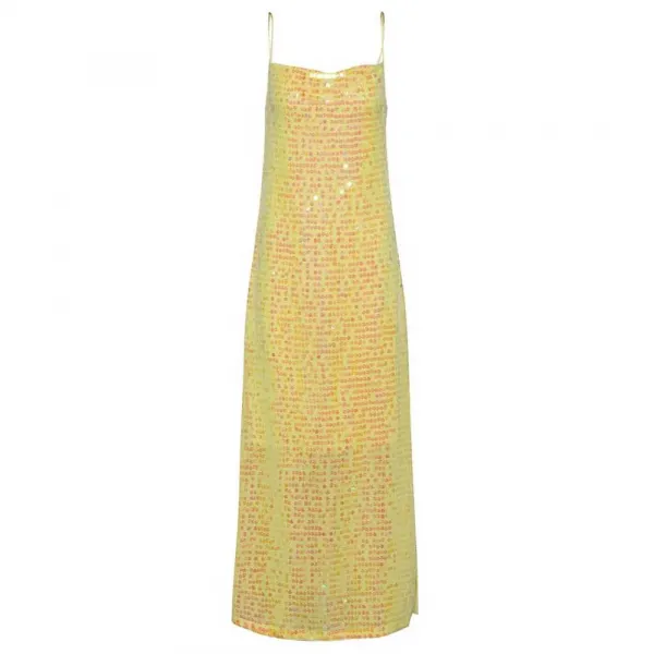스트랩이 있는 플루이드 스팽글 드레스.