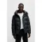 대비되는 광택 안감으로 마감된 후드와 밑단.