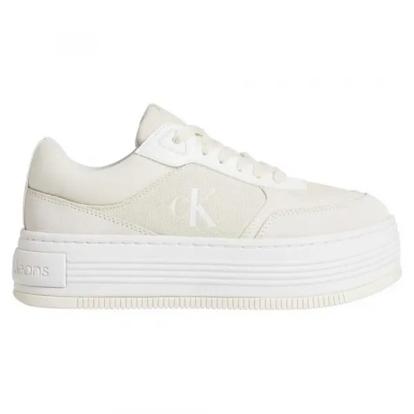 칼빈 클라인 여성용 베지 캔버스 플랫폼 스니커즈, 매칭 로고와 스웨이드 디테일.