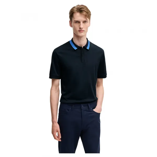 부드러움과 광택을 높이기 위해 머서리제 처리된 코튼 소재로 제작된 이 반팔 폴로 셔츠는 칼라에 블록 스트라이프가 들어 있습니다.