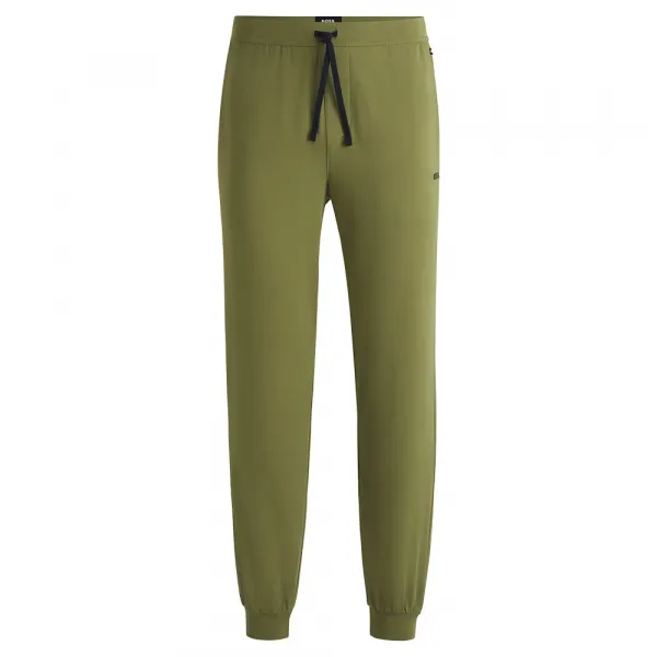 자수 브랜딩과 허리 조임끈이 특징인 이 바지는 부드러운 스트레치 원단으로 제작되었습니다.