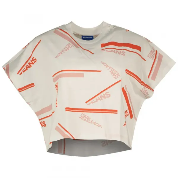 KARL LAGERFELD 박시 Aop 스트라이프 반팔 티셔츠로 티셔츠 게임을 한 단계 끌어올리세요.