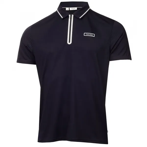 독특한 대비 색상의 플라스티졸 지퍼 장식과 CK 양각 디자인 슬리브가 특징인 세상에 단 하나뿐인 폴로 셔츠입니다.