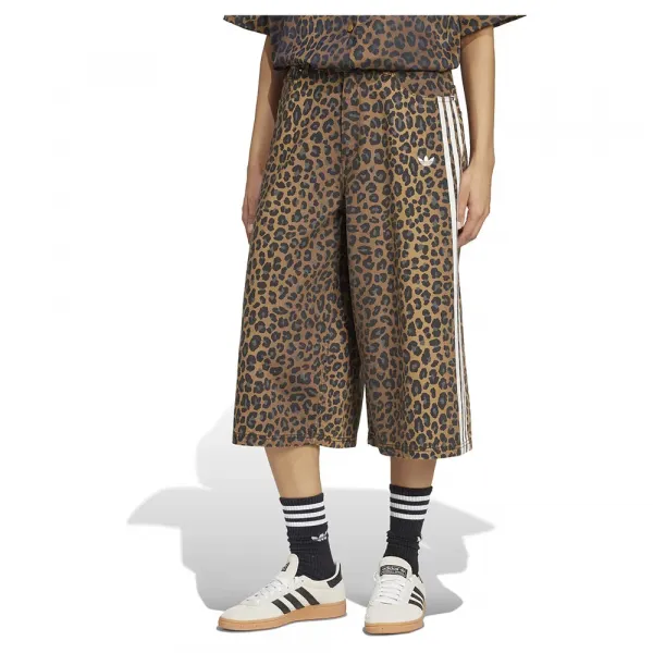 애니멀 프린트가 전체적인 디자인의 기반을 이루고 있으며, 대비되는 색상의 삼선 스트라이프가 돋보입니다.