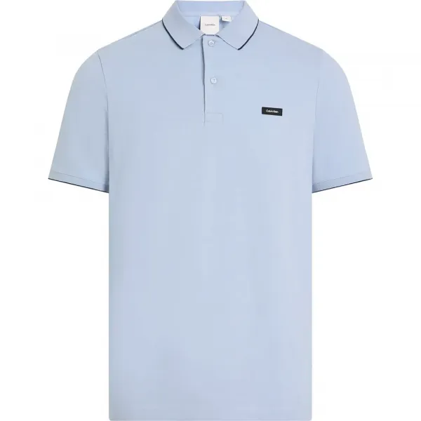 캘빈 클라인 맨즈웨어 피케 반팔 폴로, 엘라스테인 4% 포함, 칼라와 소매에 팁핑, 가슴에 로고.