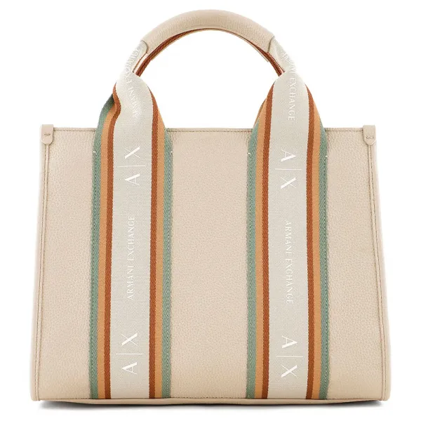 내구성이 뛰어난 그레인 효과의 인조 가죽으로 제작된 클래식한 정사각형 구조의 토트 백.