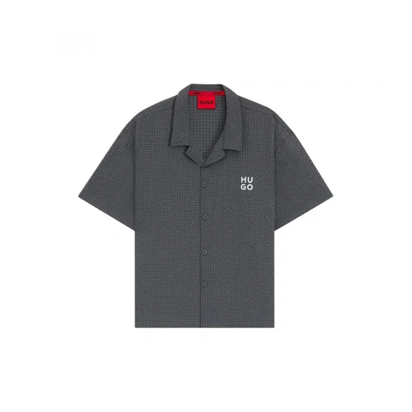 대조적인 스택 로고 자수가 특징입니다.