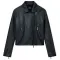 로고가 있는 에코 레더 봄버 재킷입니다.