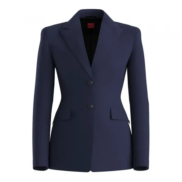 특징:- 레귤러 핏- 피크드 라펠- 상단 여밈: 버튼 여밈- 버튼 개수: 2개- 상단 포켓: 플랩 포켓- 커프스 없음- 벤트 없음- 전체 안감세부 정보:- 소재: 폴리에스터 88%, 엘라스테인 12%, 안감: 폴리에스터 100%취급 방법:- 세탁 금지- 표백 금지- 건조기 사용 금지- 저온 다림질- 약품 드라이 크리닝 가능