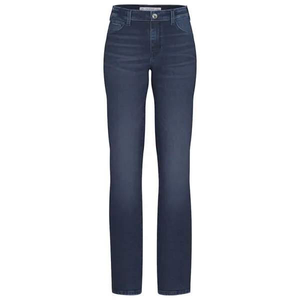 클래식한 미드라이즈 허리, 스트레이트 컷 레그.
