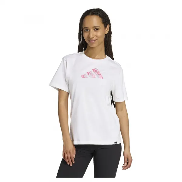 산뜻한 플로럴 그래픽이 돋보이는 면 티셔츠입니다.