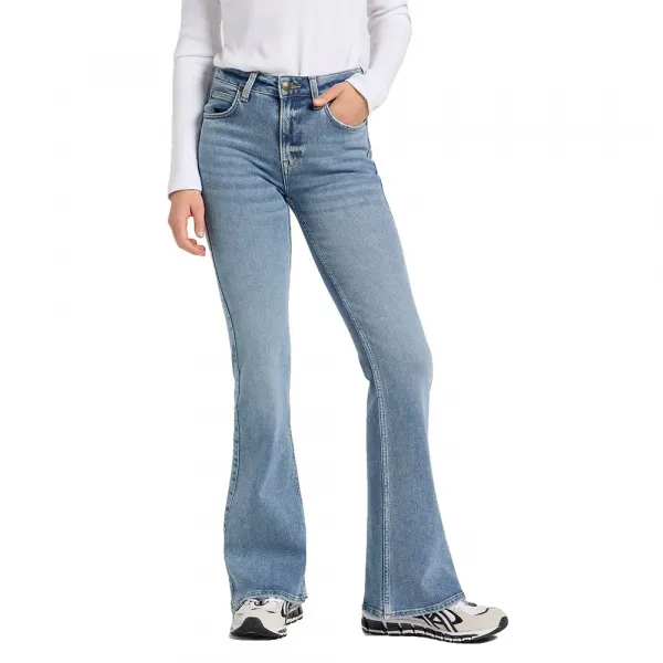 허리를 매우 높게 잡아 다리가 길어 보이는 효과를 주며, 허벅지부터 발목까지 스키니 핏으로 떨어지다가 발목에서 넓은 플레어로 퍼집니다.