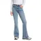 허리를 높게 잡아 다리가 길어 보이는 효과를 주며, 허벅지부터 무릎까지는 슬림하게 떨어지고 무릎 아래부터는 넓고 과감한 플레어로 퍼집니다.