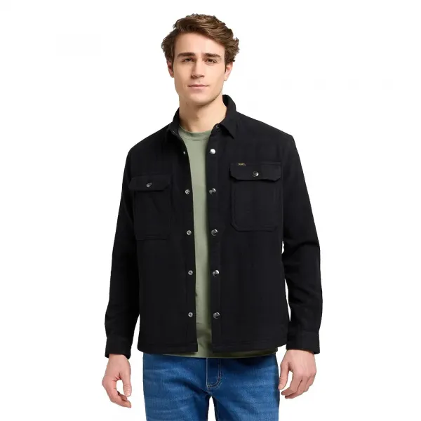 이 오버셔츠는 앞면 단추와 어울리는 스냅 버튼 클로저가 있는 플랩 포켓과 옆면 핸드 포켓이 특징입니다.