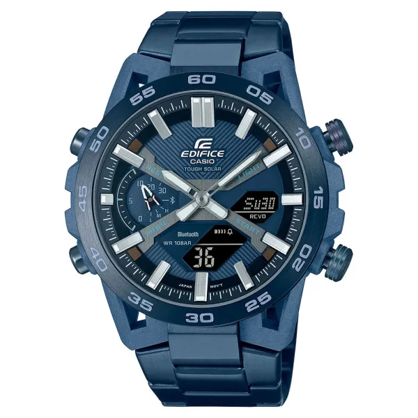 레이싱카의 서스펜션 암에서 영감을 받은 디자인의 ECB-2000 SOSPENSIONE는 EDIFICE 라인 최초로 인디고 블루 카본으로 제작된 탄소섬유 강화 수지 케이스를 채택했습니다.