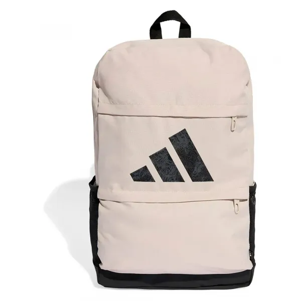 재활용 소재를 일부 사용하여 제작된 그래픽 3선 로고 백팩입니다.