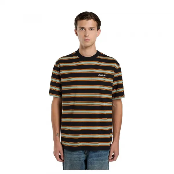 기술 사양:원단: 면네크라인: 라운드소매: 반팔패턴: 스트라이프핏: 레귤러 핏브랜딩: 직조 디키즈 라벨York 스트라이프 반팔 티셔츠.