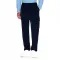 보이지 않는 후크 여밈, 웰트 및 플랩 포켓, 스트레이트 레그, 웰트 포켓, 뒷면 메탈 로고 플레이트가 있는 바지.