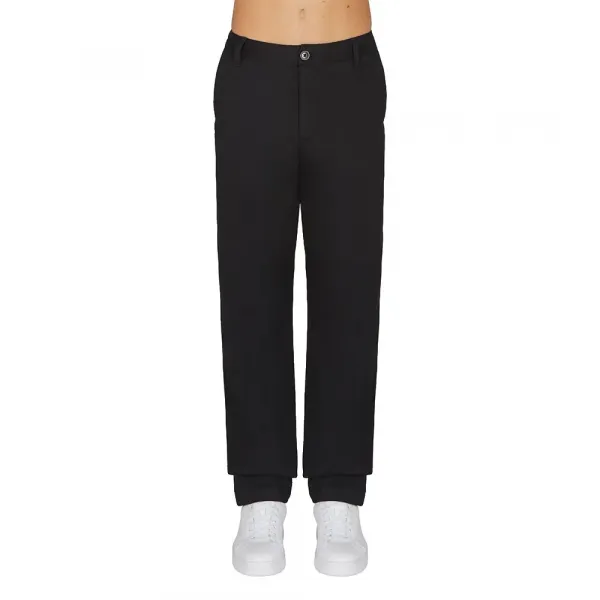면 포플린 소재로 제작되었으며, 지퍼 잠금, 벨트 고리, 옆면 및 뒷면 웰트 포켓이 특징입니다.