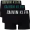 허리 밴드에 로고가 있는 면 소재의 칼빈클라인 트렁크 3개 팩입니다.