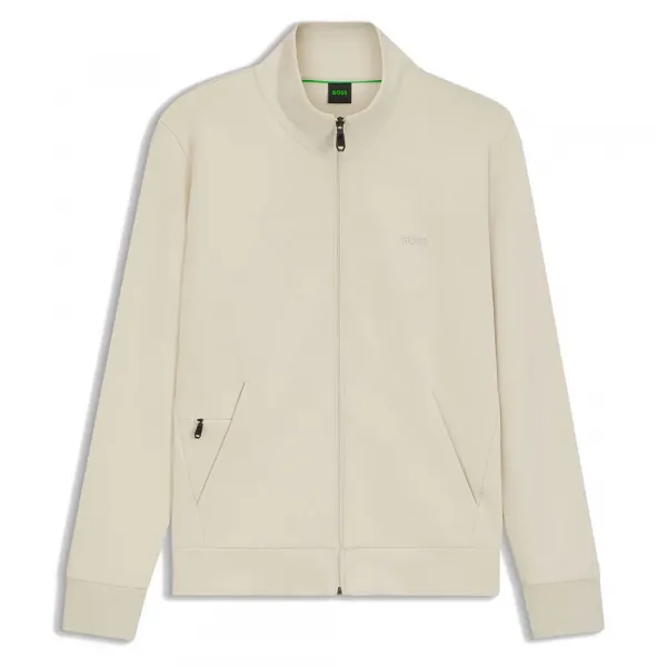 스탠드업 칼라의 지퍼 스웨트 재킷.