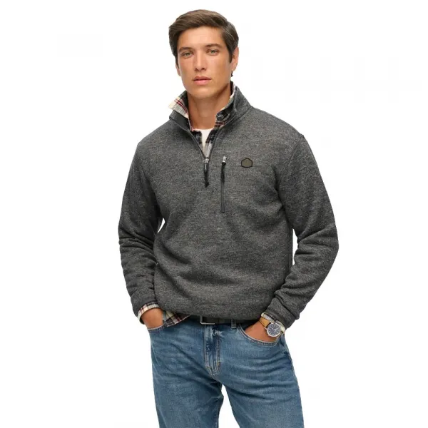 여밈: 반 지퍼 원단 종류: 합성 플리스 후드: 후드 없음 소매: 골지 커프스와 통합 엄지 구멍이 있는 긴소매 주머니: 앞면 파우치 포켓 칼라: 스탠드업 칼라 밑단: 골지 밑단 브랜딩: 자수 Superdry 로고