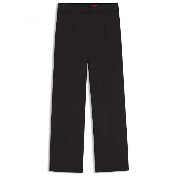 특징:- 레귤러 핏- 레귤러 라이즈- 후크 및 지퍼 여밈- 와이드 레그- 앞면 주름- 하단 앞면 포켓: 옆면 슬래시 포켓- 하단 뒷면 포켓: 웰트 포켓- 안감 없음사양:- 소재: 69% 폴리에스터, 22% 비스코스, 9% 엘라스테인세탁 정보:- 세탁 금지- 표백 금지- 회전식 건조 금지- 저온 다림질- 약한 드라이클리닝