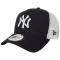 가장 성공적이고 인기 있는 트러커 중 하나인 이 네이비 A-FRAME 트러커는 깨끗한 느낌을 위해 광택 있는 흰색 자수로 뉴욕 양키스 로고를 새겼습니다.