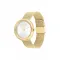 34mm 스테인리스 스틸 케이스, 옐로우 골드 이온 도금, 베젤 크리스탈 장식, 마커 없는 화이트 이리데슨트 다이얼, 옐로우 골드 이온 도금 밀레니즈 메시 브레이슬릿.
