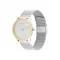 35mm 스테인리스 스틸 케이스, 옐로우 골드 이온 도금, 아이코닉한 CK 로고가 있는 블랙 다이얼, 옐로우 골드 이온 도금 밀라네즈 메시 브레이슬릿.