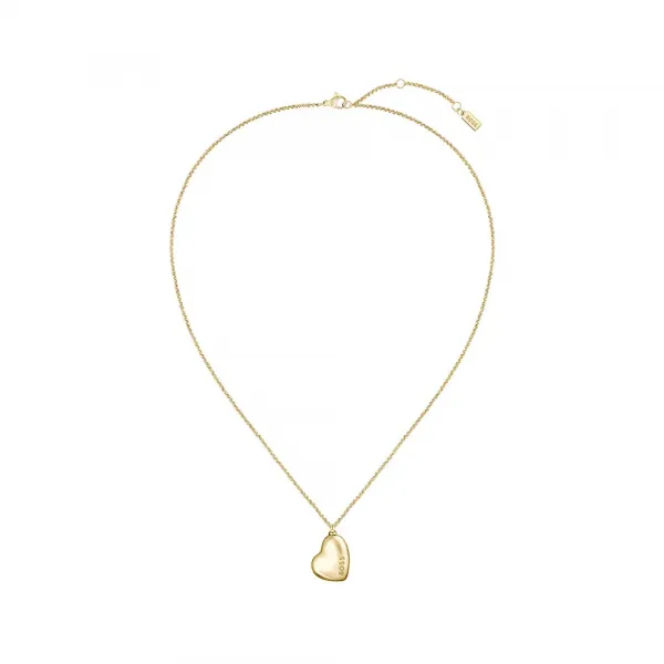 밝은 연노랑 골드 IP 도금 스테인리스 스틸 비드 체인 목걸이, 457mm에서 507mm까지 연장 가능, 둥글고 불규칙한 18mm 밝은 연노랑 골드 IP 도금 스테인리스 스틸 하트 참과 로고 포함.