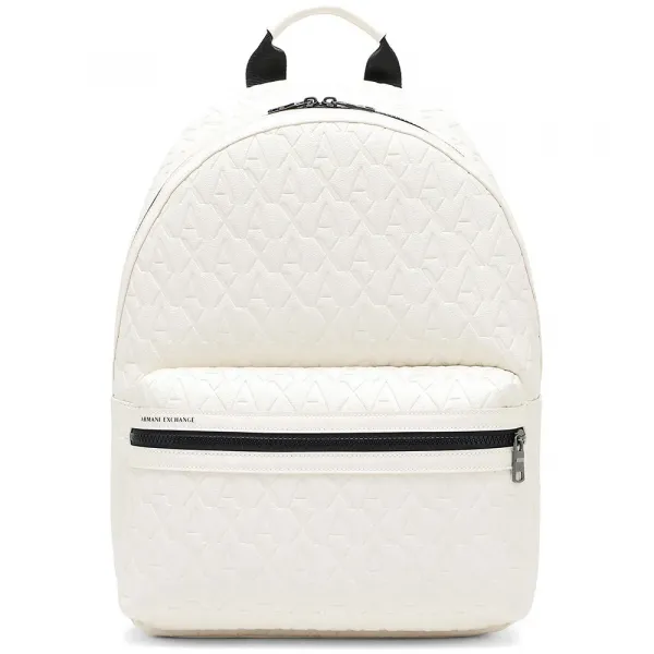 재활용 소재로 제작된 백팩, 지퍼 잠금, 상단 핸들, 외부 지퍼 포켓, 조절 가능한 숄더 스트랩.