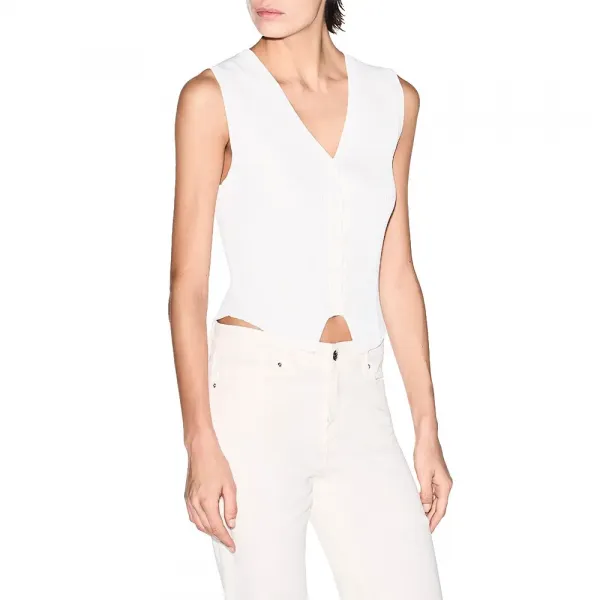 톤온톤 고무 버튼 5개로 세심하게 제작된 시크한 V넥 민소매 가디건입니다.