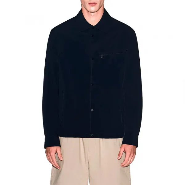 왼쪽 가슴에 지퍼 포켓이 있으며, 스냅 버튼이 달린 세로형 포켓이 있습니다.