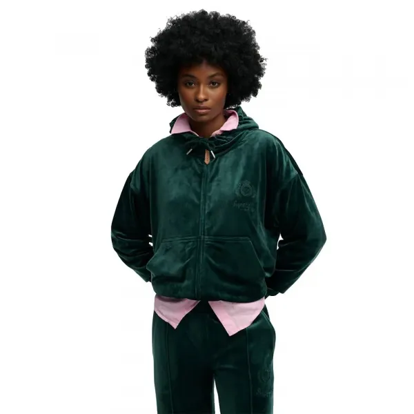 고급스러운 벨루어 원단과 가슴 부분에 자수 처리된 세련된 로고로 제작되어 컨트리 클럽의 시크한 분위기를 물씬 풍기며 옷장의 필수 아이템이 될 것입니다.