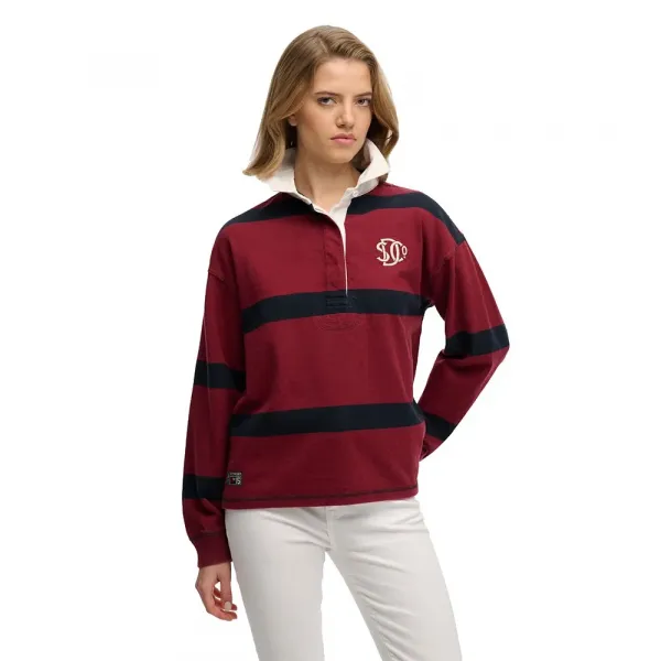 이 빈티지 필수품은 클래식한 럭비 칼라와 겨드랑이 통풍구로 영국 스포츠에 대한 완벽한 향수를 불러일으킵니다.