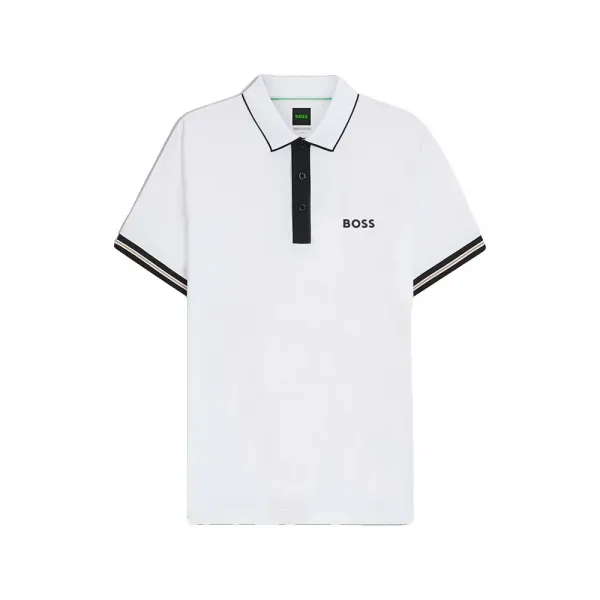 특징: - 슬림핏 - 네크라인: 플랫 니트 칼라 - 반팔 - 플랫 니트 커프스 - 옆트임 - 표준 길이 - 메쉬 칼라 사양: - 소재: 폴리에스터 100% (재활용 97%) 관리: - 찬물에 약하게 기계 세탁 - 표백제 사용 금지 - 회전 건조 금지 - 저온 다림질 - 드라이클리닝 금지