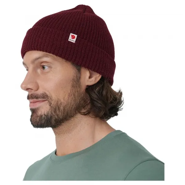 넓은 접이식 가장자리와 작은 텍스타일 로고 탭이 있는 장식용 와플 니트.