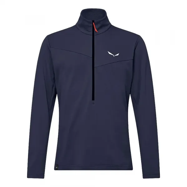 하프 집, 부드럽고 높은 칼라, 보온성을 유지하기 위한 신축성 트리밍 처리된 밑단과 커프스가 특징입니다.