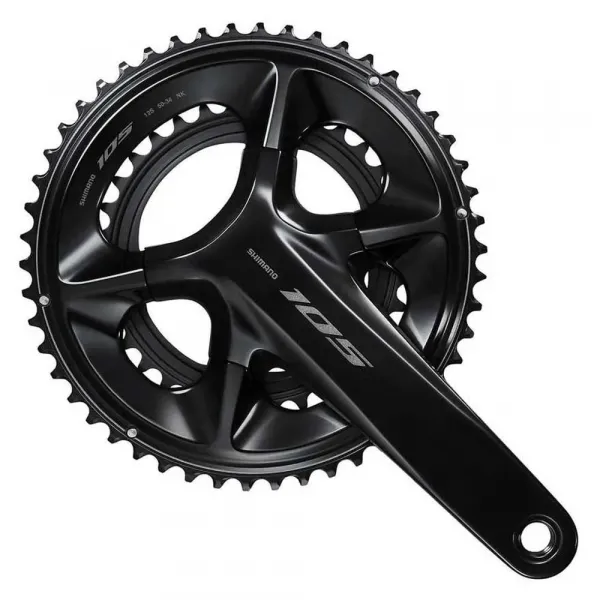체인 링 뒷면의 수지 리브는 Shimano 105의 고유한 구조 설계로 철저한 중량 감소와 선명한 변속 성능을 모두 달성합니다.