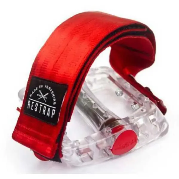재활용된 안전 벨트 웨빙으로 제작된 스트랩은 3중 벨크로 시스템의 이점을 제공하며 독특한 트위스트 텐션 디자인 덕분에 발을 제자리에 단단히 고정합니다.