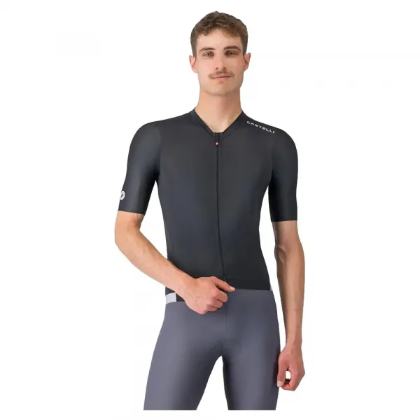 통기성, 편안함, 완벽한 핏을 위한 Castelli 엔지니어링 Air_O 스트레치 원단 통기성 및 공기 역학 성능에 최적화된 원단 편안함을 위한 컷-엣지 소매 끝 귀중품 보관을 위한 네 번째 지퍼 포켓이 있는 3개의 뒷주머니 사용하기 쉬운 지퍼 풀이 있는 YKK® Vislon® 풀 지퍼 허리 부분의 실리콘 밴드로 저지를 제자리에 고정 UPF 30.