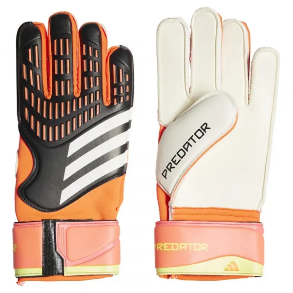 이 프레데터 매치 축구 장갑은 반 랩 손목 스트랩으로 단단히 고정됩니다.