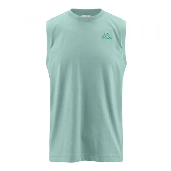 민소매 티셔츠, 라운드넥, 가슴 부분 오미니 로고.