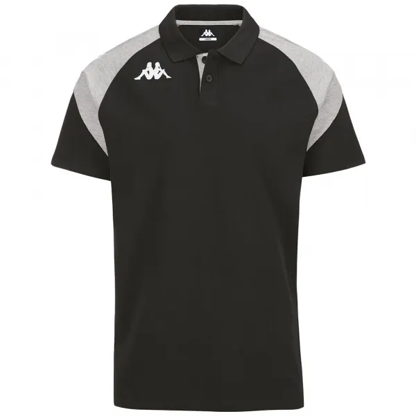 반소매, 골지 칼라, 버튼 플래킷, 소매 인서트, 앞면과 소매의 Omini 로고가 특징입니다.