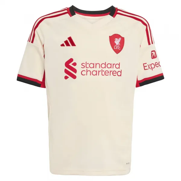 원정 경기에서 리버풀 FC의 상징적인 홈 구장을 나타내기 위해 제작된 이 주니어용 아디다스 축구 저지는 경기장 옛 메인 스탠드 꼭대기의 아치형 박공에서 영감을 받은 특별 제작된 문양이 특징입니다.