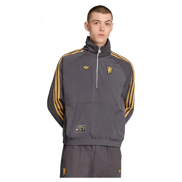 대담한 하프 지퍼 칼라, 아디다스 트레포일, 우븐 라벨은 1980년대의 상징적인 테라스 문화를 담아내도록 디자인되었습니다.